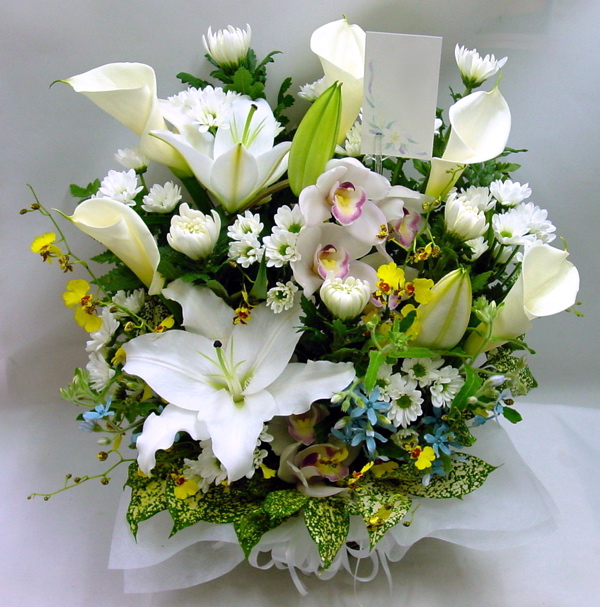 <内容>バラ、かすみ草、ミリオン、ユーカリ、ライスフラワー